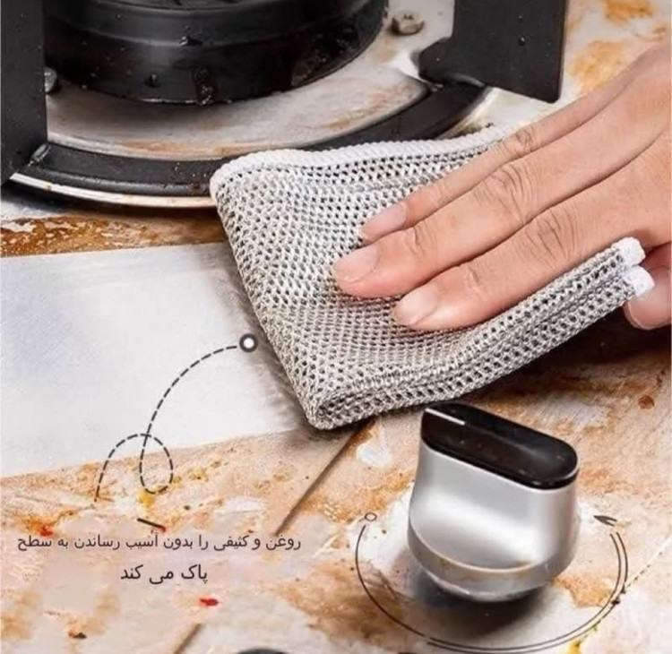 این اسکاچ از دو لایه مقاوم تشکیل شده است؛ لایه فلزی برای پاککردن چربی و لکههای سخت و لایه پلاستیکی برای کفکنندگی و محافظت از سطح ظرف.