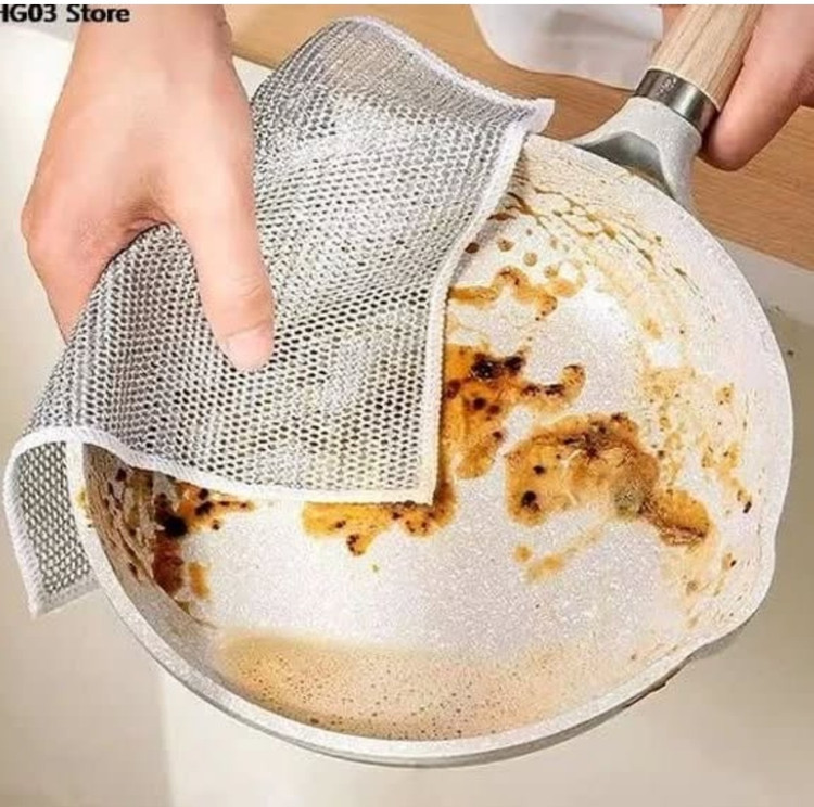 این اسکاچ از دو لایه مقاوم تشکیل شده است؛ لایه فلزی برای پاککردن چربی و لکههای سخت و لایه پلاستیکی برای کفکنندگی و محافظت از سطح ظرف.