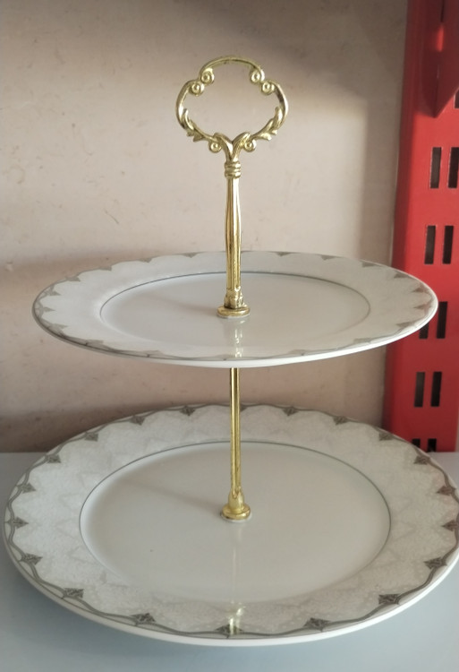 شیرینی خوری دوطبقه چینی با دسته های طلایی