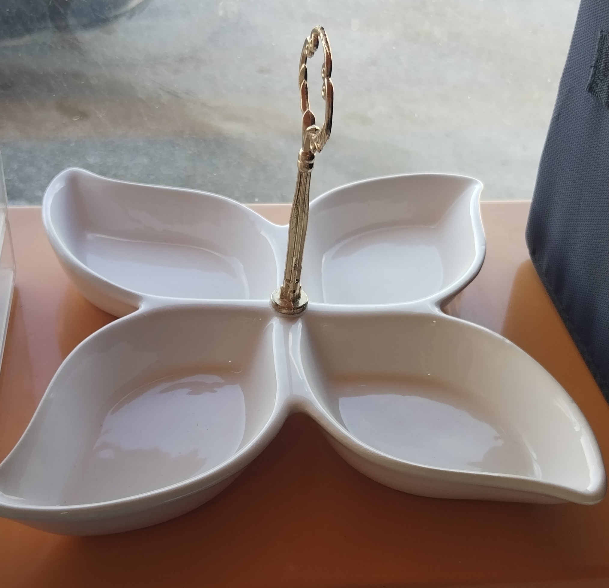 اردوخوری سرامیکی دسته طلایی ۴ خانه ارسال طرح بصورت رندوم میباشد